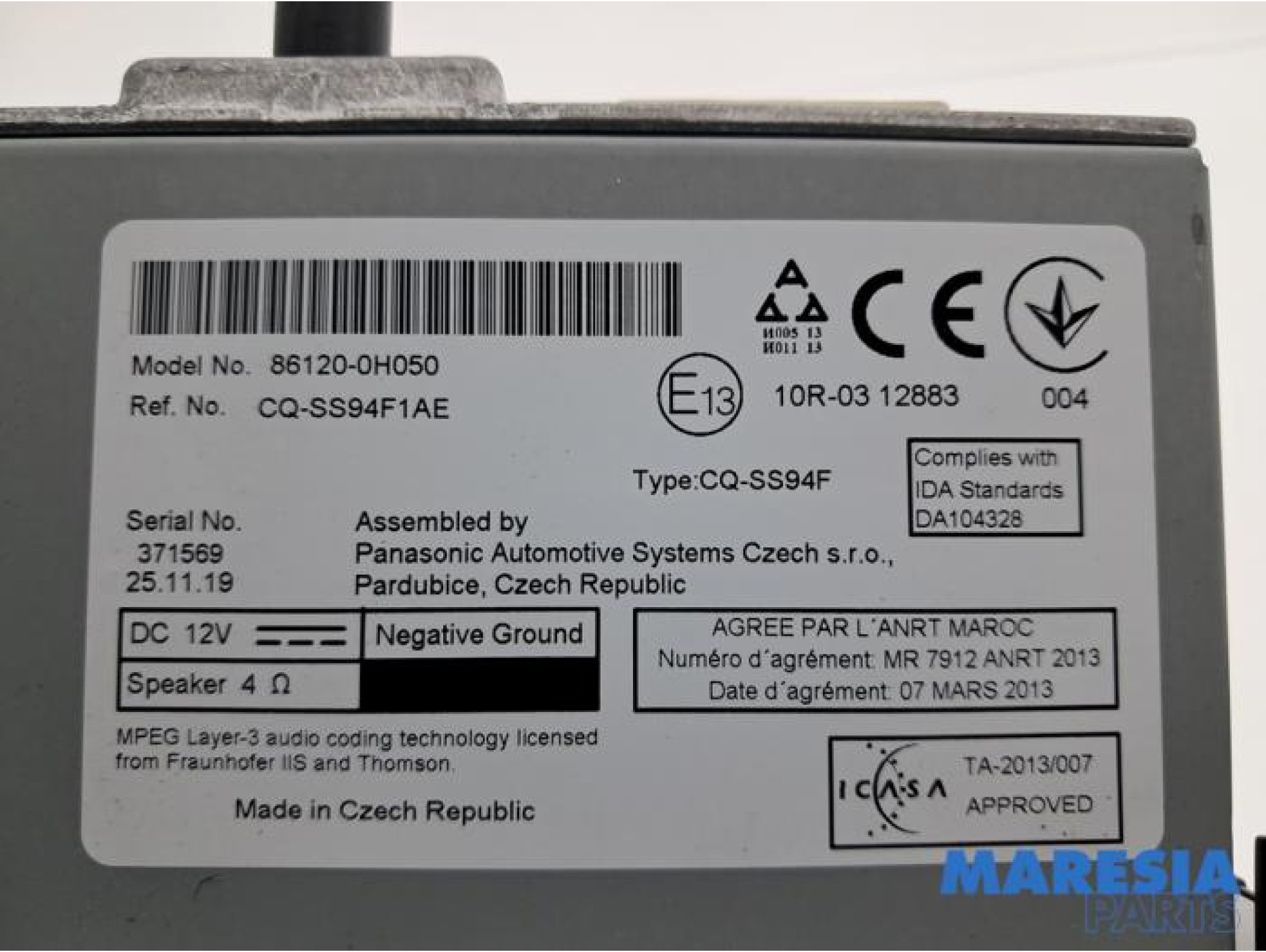 | OE-nummer | 861200H050, B000792480, 371569 |