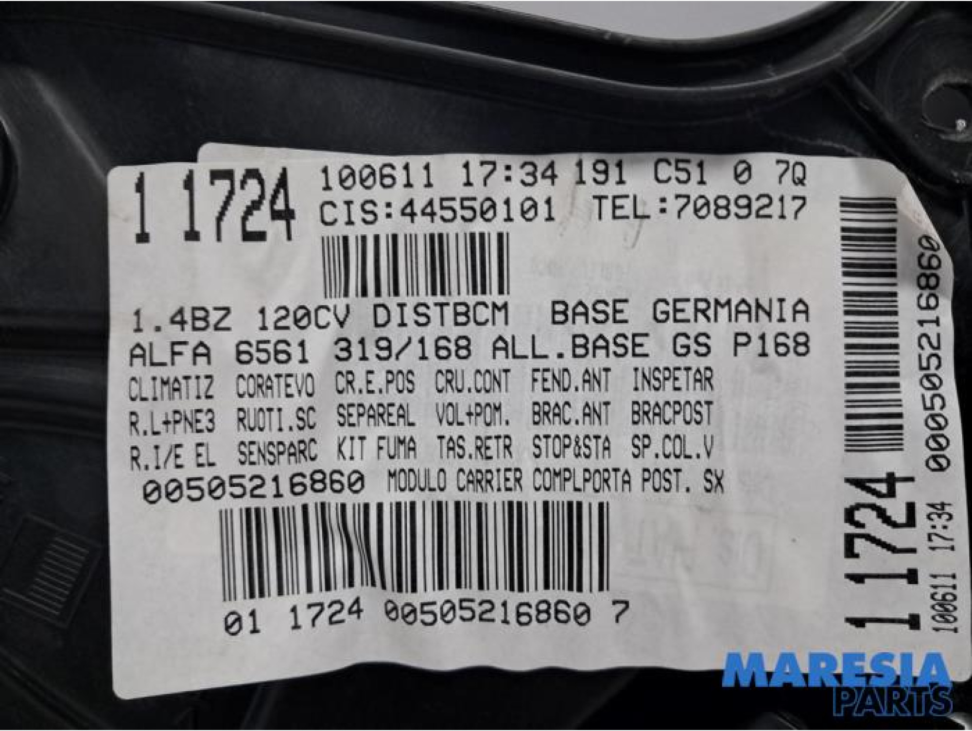 | Part number | 71777782, 71754432, 71754422, 11724, 100611, 44550101, 7089217, 00505216860 |