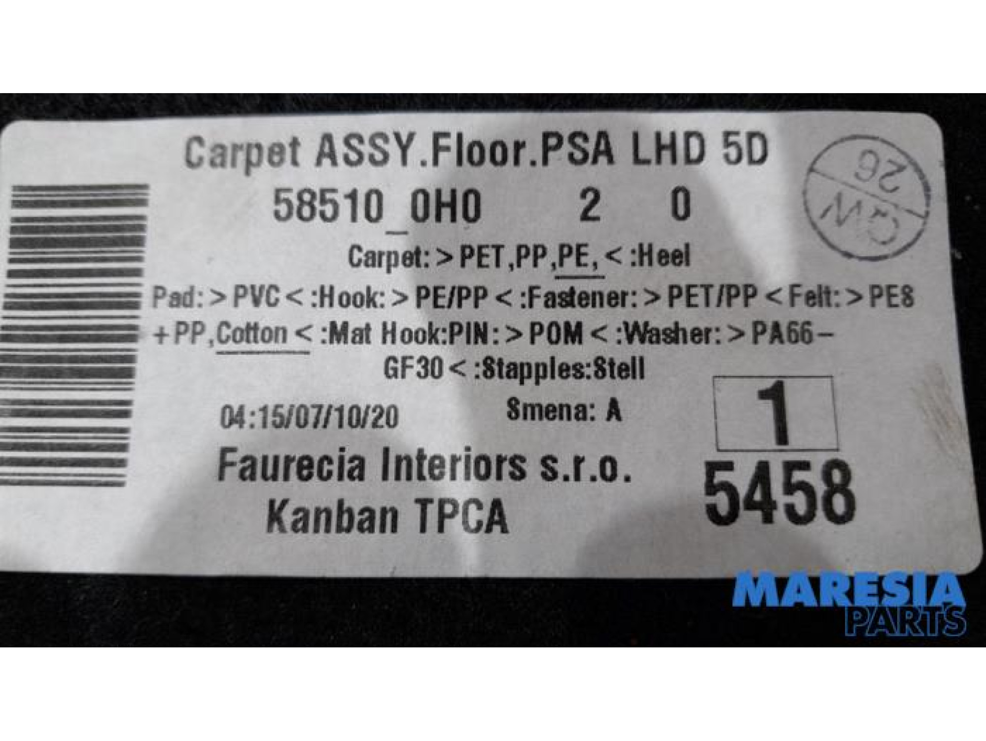 | Colour of part | Black, Zwart |
