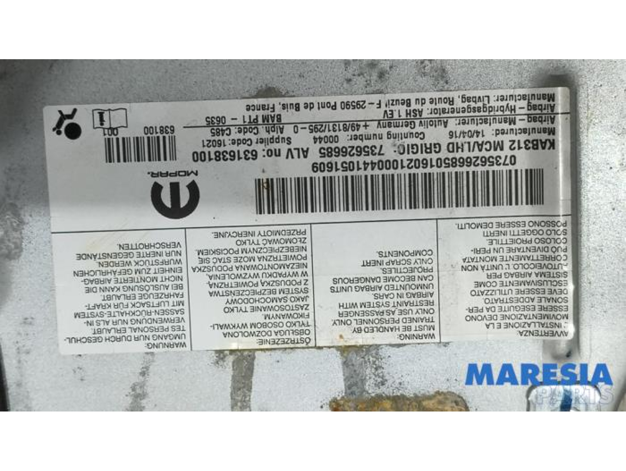 | Bijzonderheden | 3x airbag + dashboard |