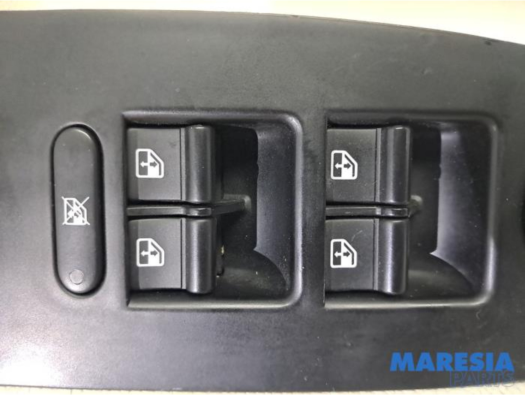 Schakelaar met vier stuk voor raam een voor spiegel en een knop voor raamslot. |