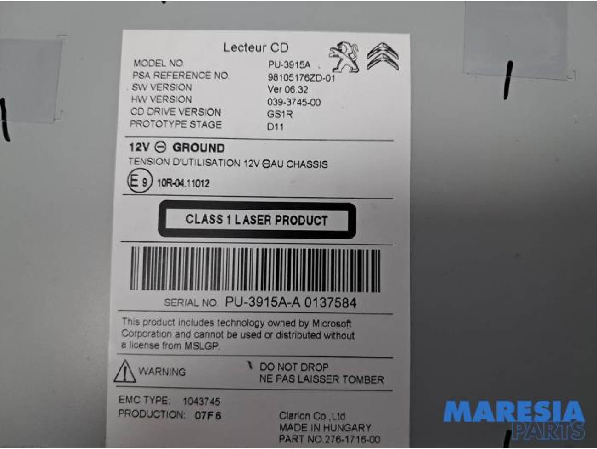 | Marque pièce | CLARION |