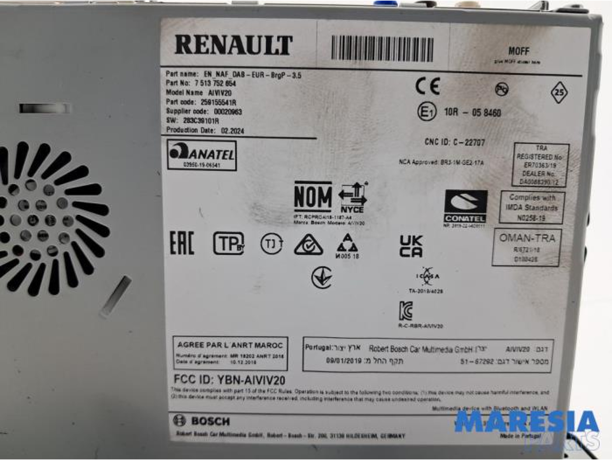 | Numéro de l'article | 259155541R, 7513752654, 00259155541R |