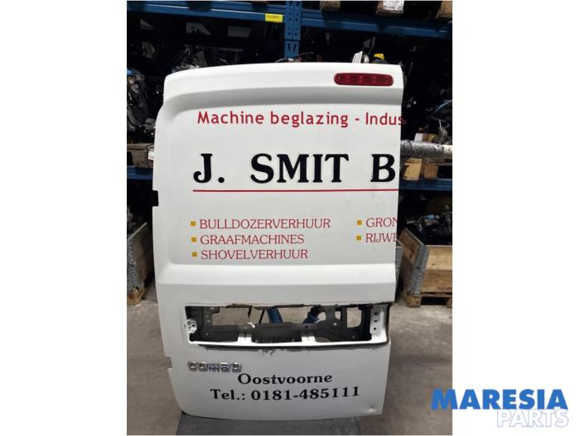 | Bijzonderheden | Gesloten achterdeur met stickers van belettering. (klein deukje rechtsonder) |