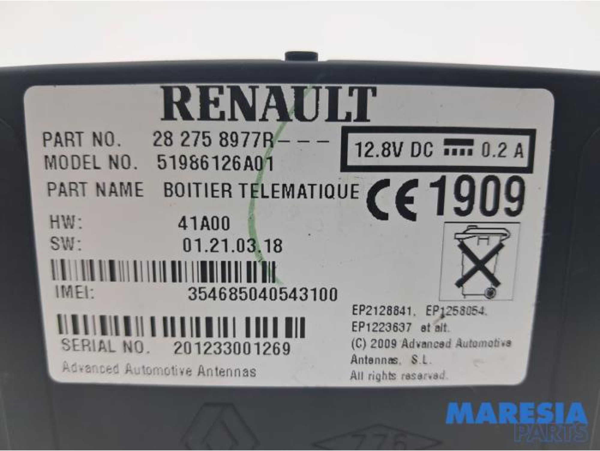 | Artikelnummer | 282759718R, 282758977R, 51986126A01, 282758936R, 00282758977R |